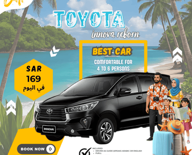 استكشف جزيرة بالي براحة تامة مع تويوتا إنوفا ريبورن التي تتسع حتى 7 ركاب. مقصورة واسعة ومكيّف هواء بارد، مع سائق خاص يتحدث العربية أو الإنجليزية لرحلة آمنة وممتعة.