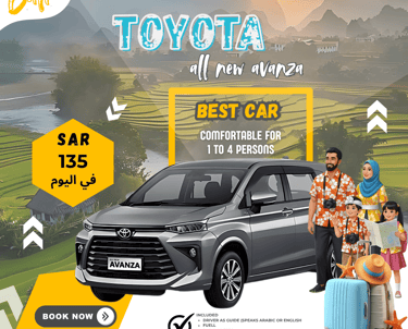 استمتع برحلة مريحة واقتصادية مع تويوتا أفانزا، المثالية لما يصل إلى 4 ركاب بدون أمتعة كبيرة. تتميز بمقصورة نظيفة ومكيّف هواء بارد، مع سائق خاص يتحدث العربية أو الإنجليزية ليأخذك في جولة آمنة ومريحة لاكتشاف جمال بالي.